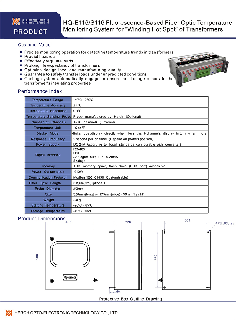 Products > Fiber Optic Temperature Monitoring System for Oil-immersed Transformer Winding > Fluorescence-based Fiber Optic Temperature Monitoring System for "Winding Hot Spot" Transformer