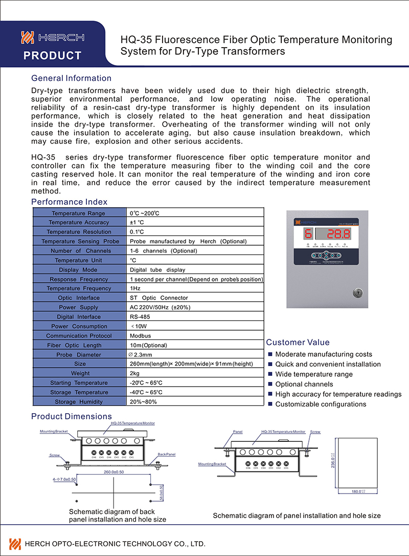 Products > Fluorescence-based Fiber Optic Temperature Monitoring System for Dry-type Transformer > HQ-35 Fluorescence Fiber Optic Temperature Monitoring System for Dry-Type Transformers
