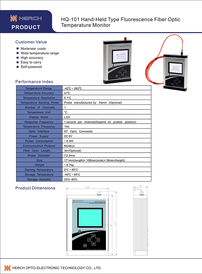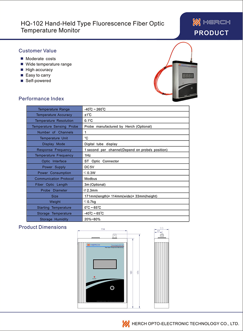Products > Hand-held Type Fluorescence Fiber Optic Temperature Monitoring Series(HQ-101/HQ-102) > Hand-Held Type Fluorescence Fiber Optic Temperature Monitoring